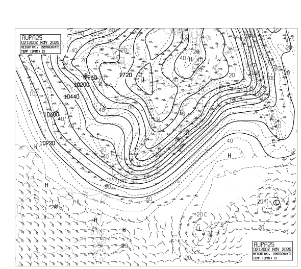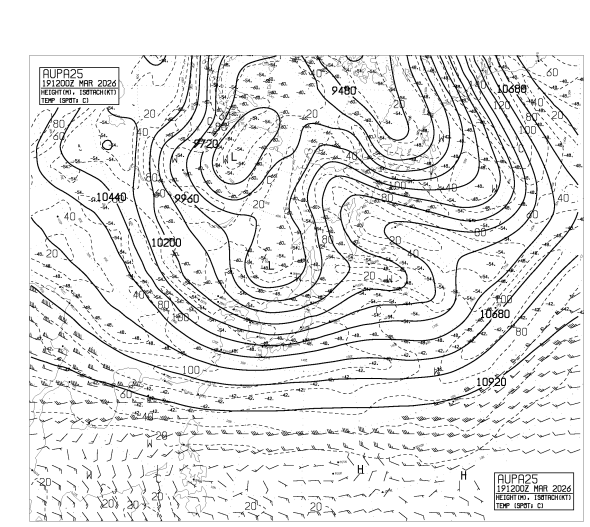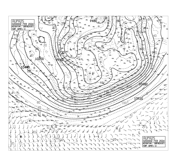 HOME > 専門天気図 AUPA25 > AUPA25 アジア太平洋250hPa高度・気温・風・圏界面