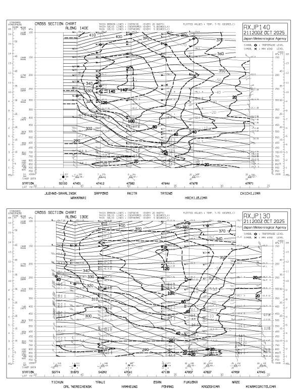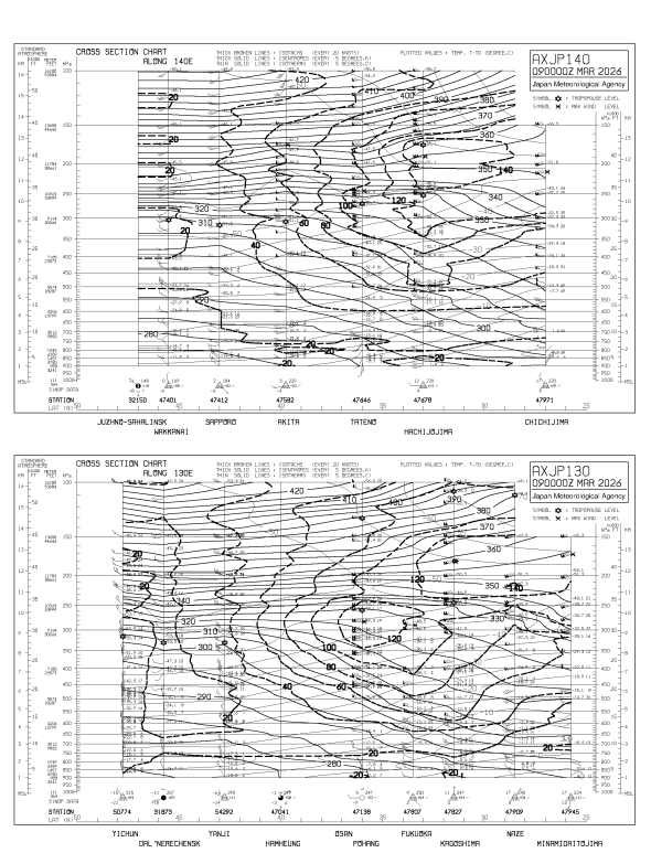 HOME > 専門天気図 AXJP130・140 > AXJP130・140 高層断面図