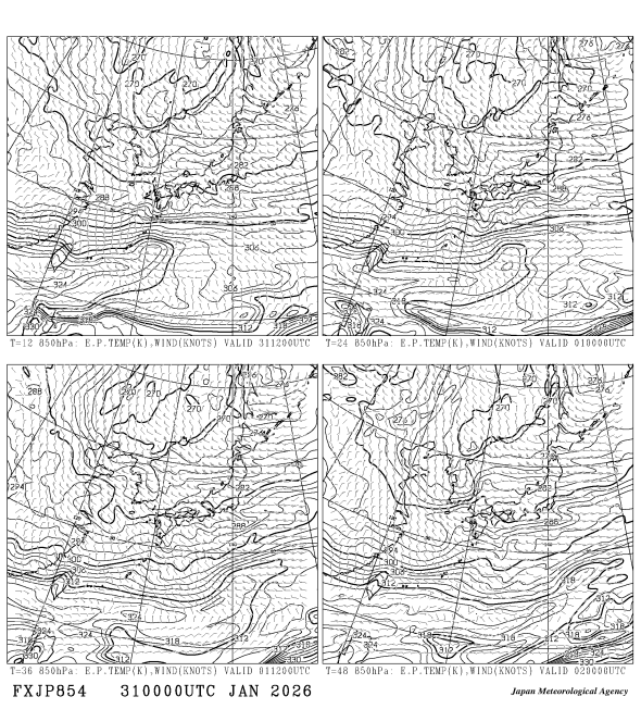 [FXJP854] 日本850hPa相当温位・風 12・24・36・48時間予想