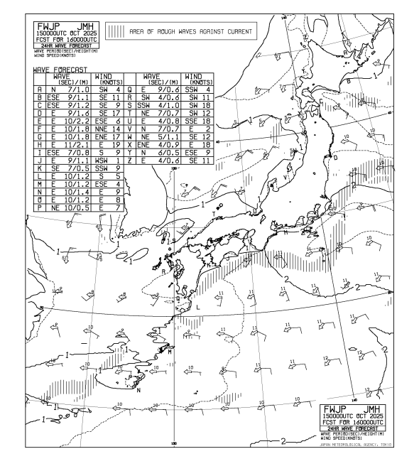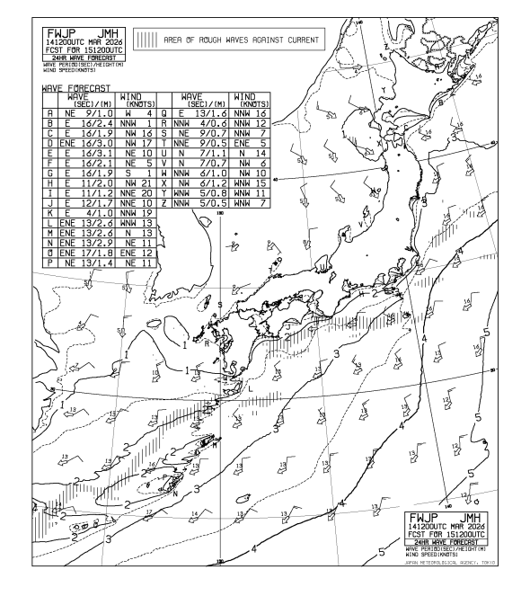 HOME > 海洋の気象情報 FWJP > FWJP 沿岸波浪24時間予想図