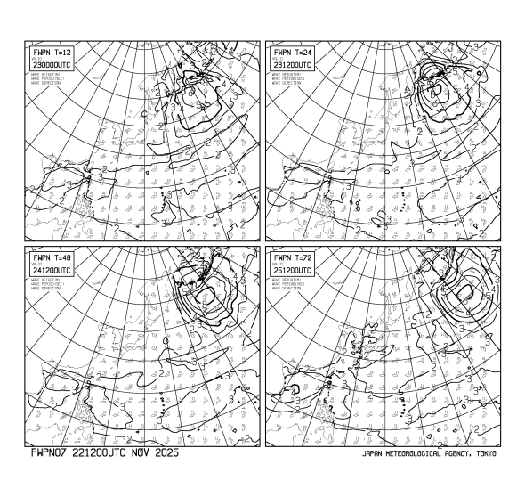 HOME > 海洋の気象情報 FWPN07 > FWPN07 外洋波浪12・24・48・72時間予想図