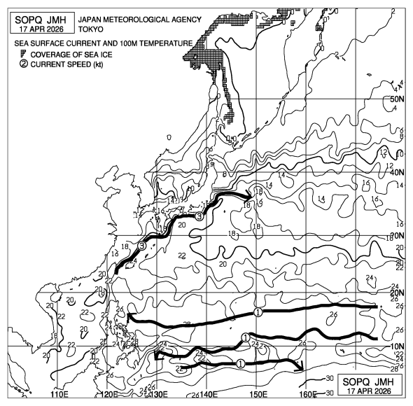[SOPQ] 北西太平洋海流・表層(100mの深さ)水温図